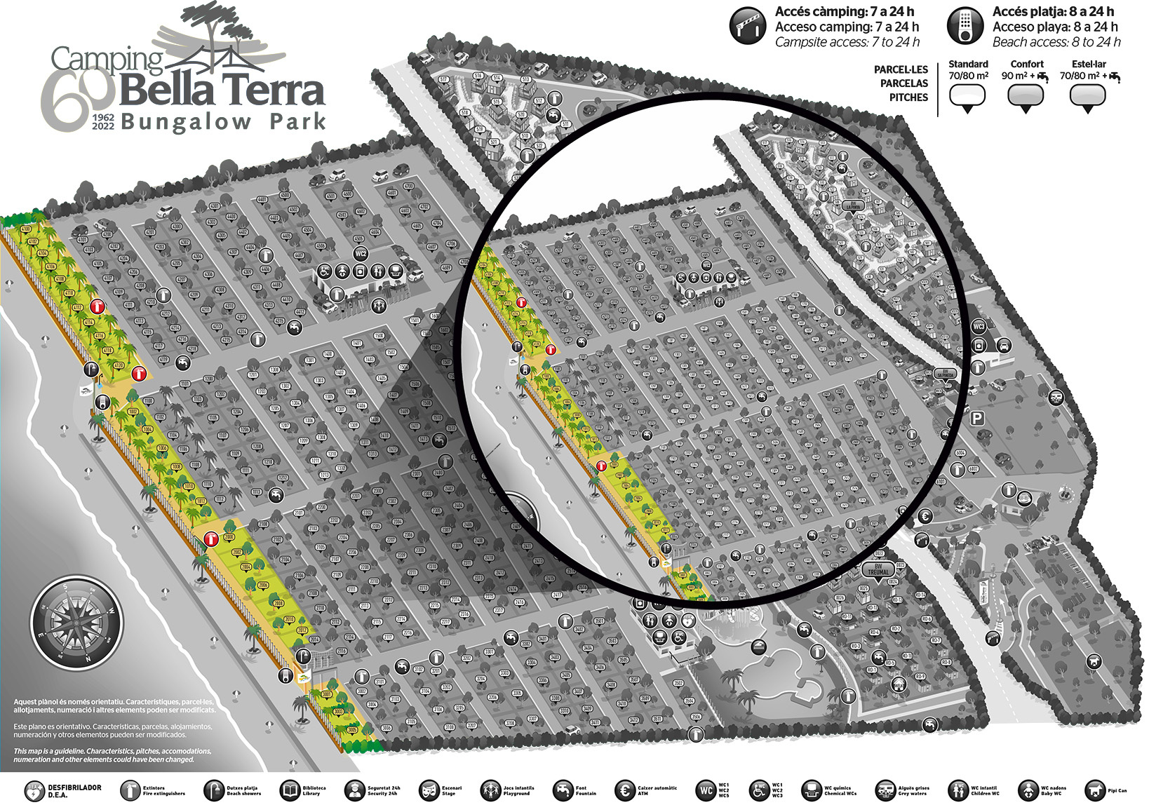 Komfort Strand pladser lokaliseres på kortet over campingpladsen. VED STRANDPROMENADEN.
